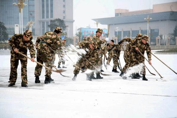 無數(shù)環(huán)衛(wèi)工人和武警官兵