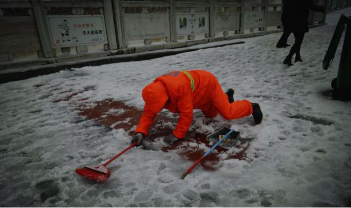 悄悄掃除路面的雨雪垃圾